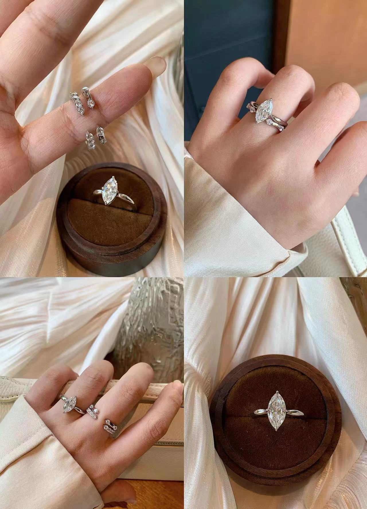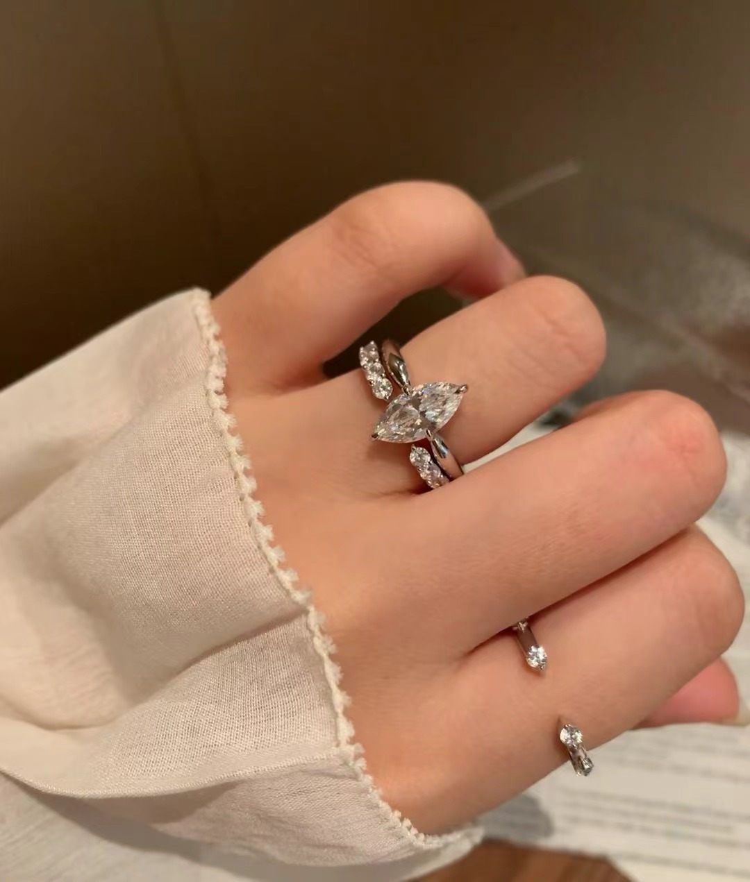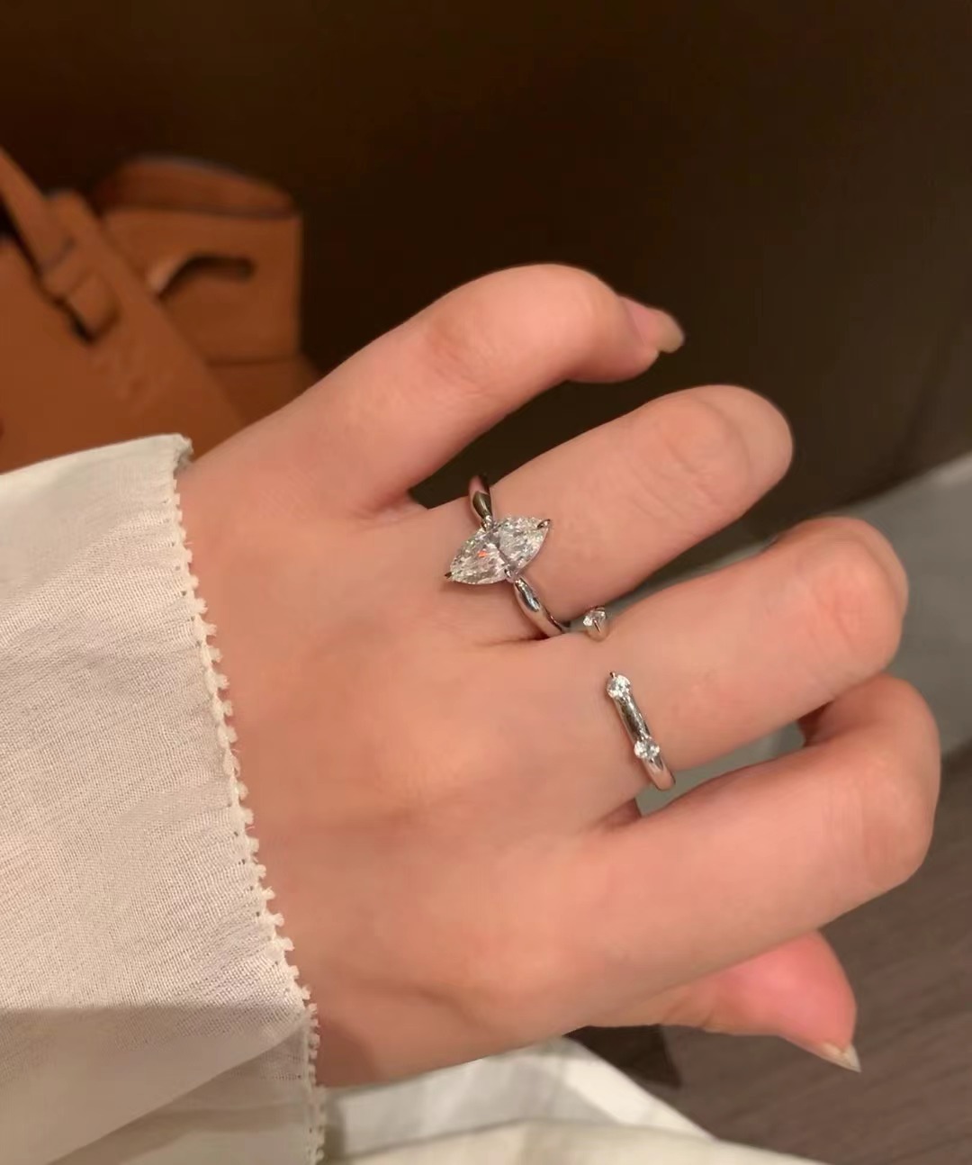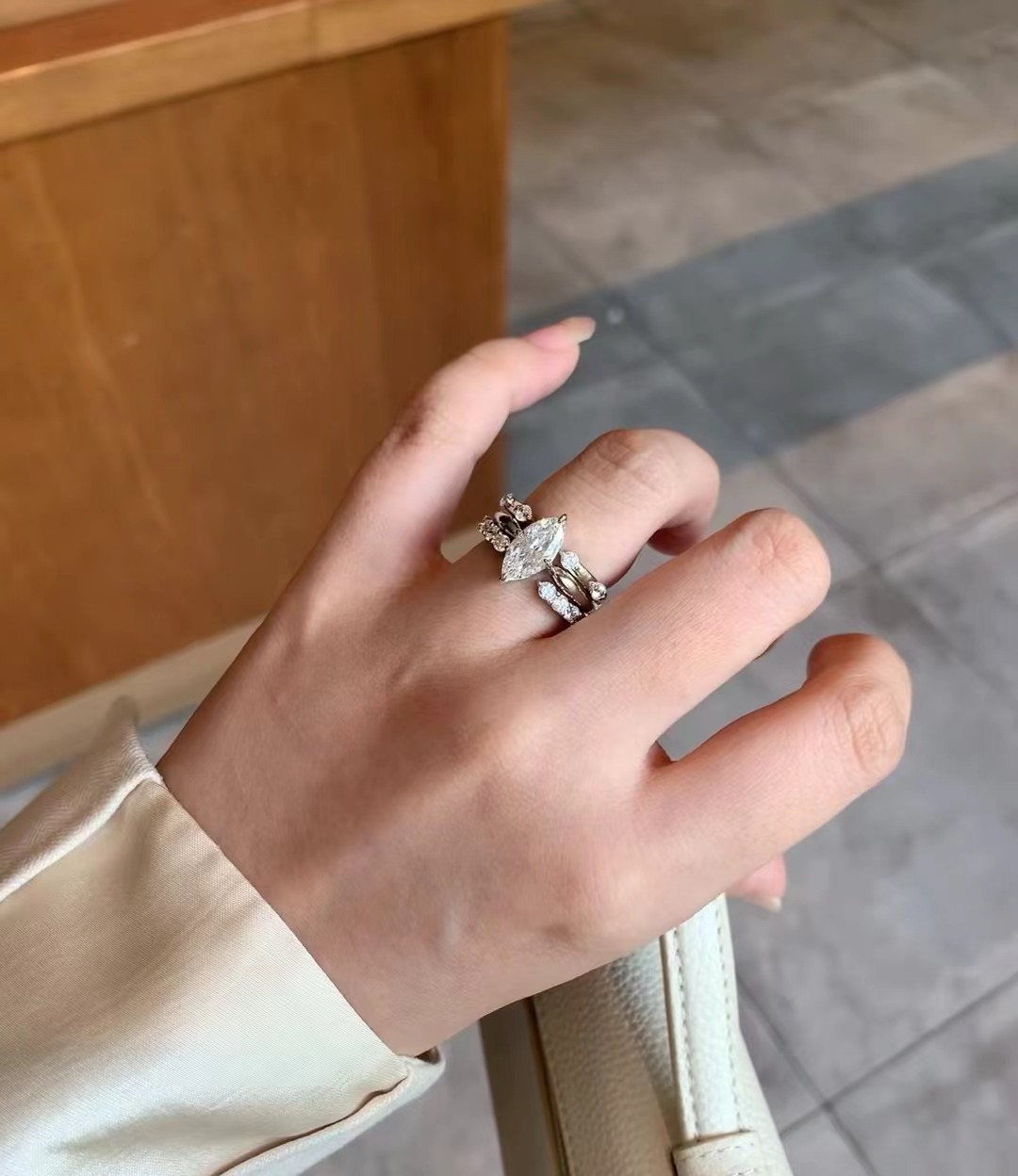 خاتم ماركيز مرصع بأحجار الراين عالية الجودة من الفضة الإسترلينية عيار 925