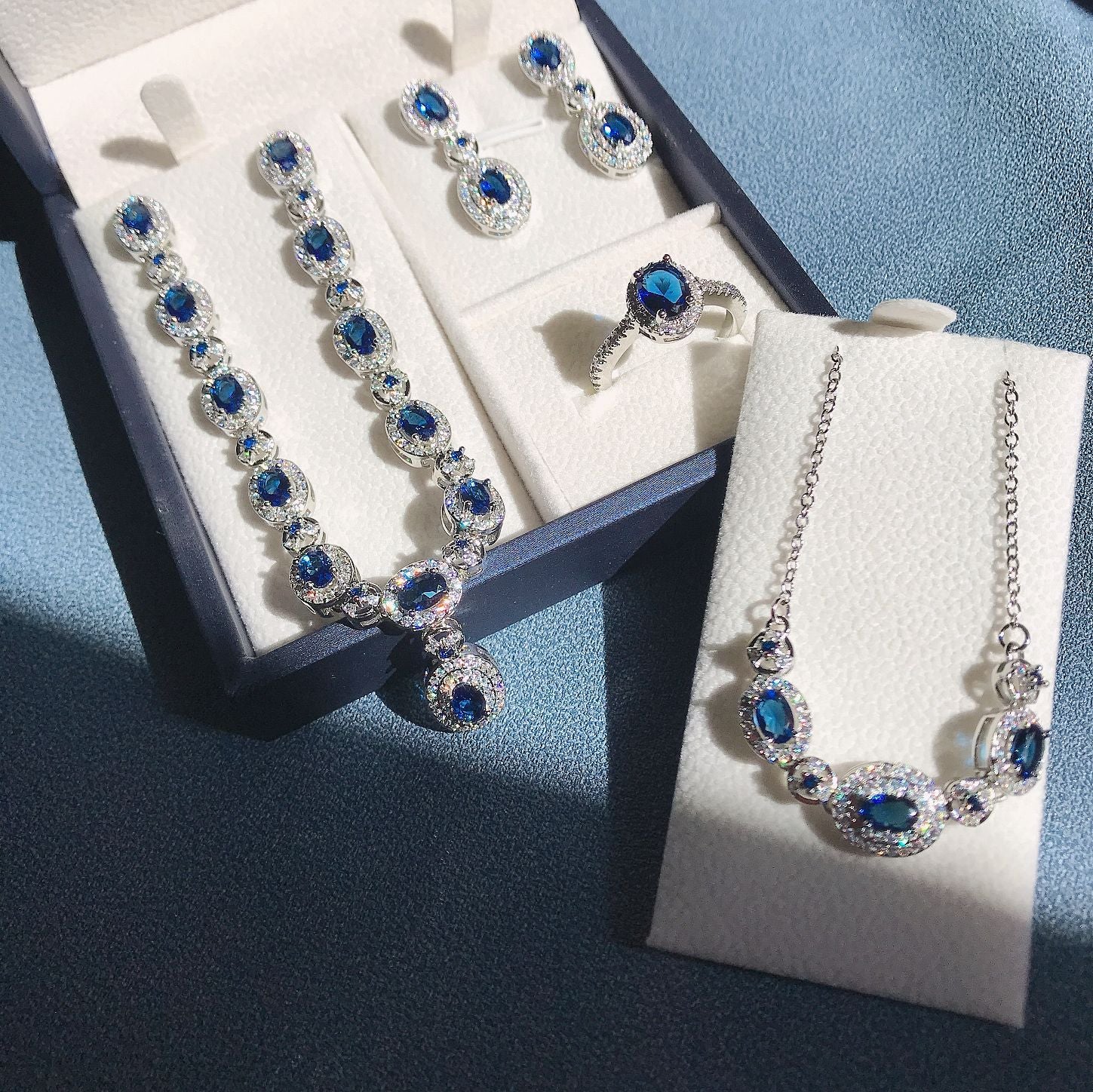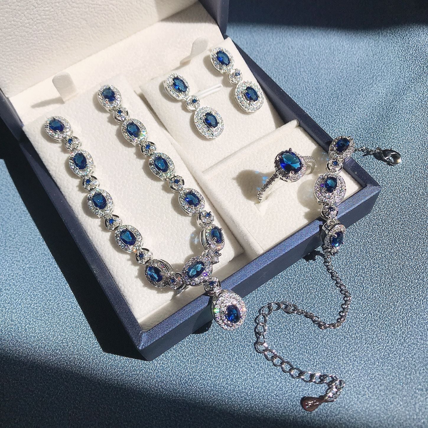 18k gold plated micro-inlaid colorful bracelet earrings ring necklace set