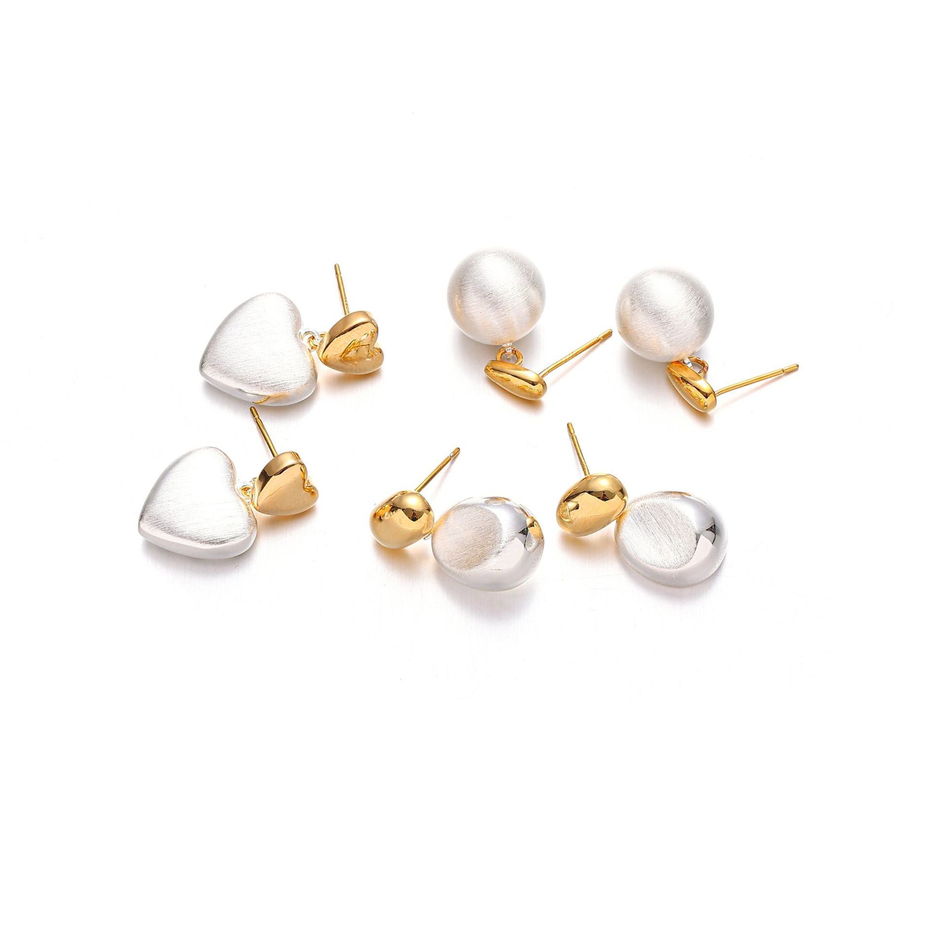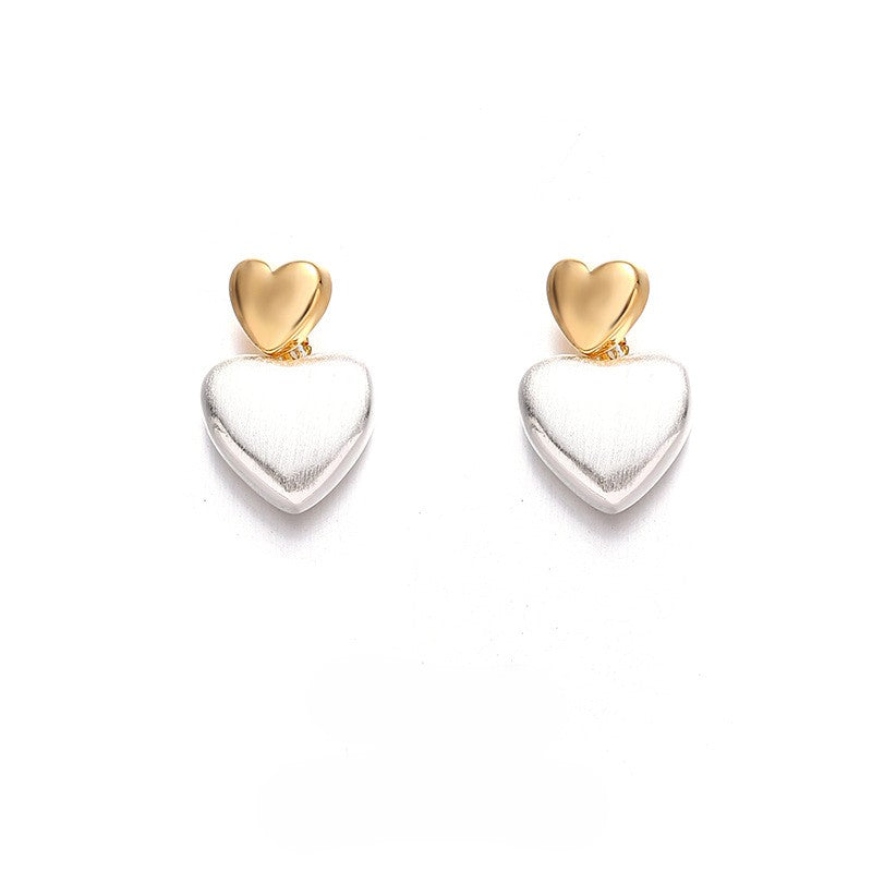 ダブルラブゴールドワイヤードローイングハート型ボールイヤリング