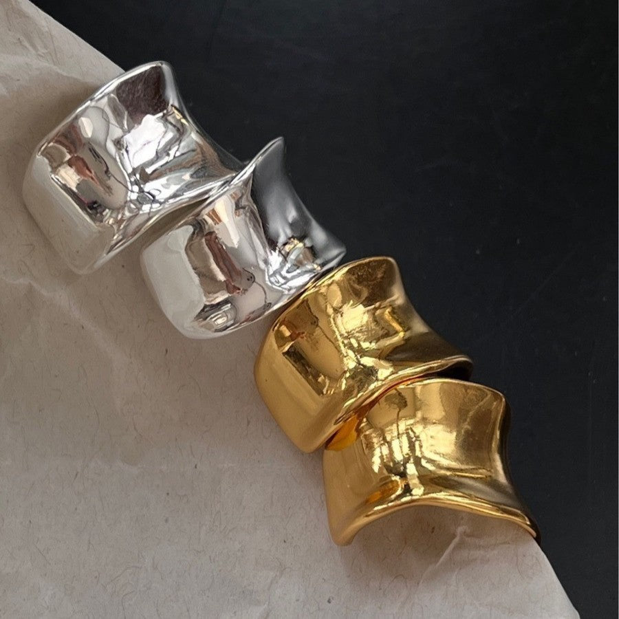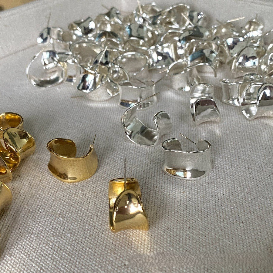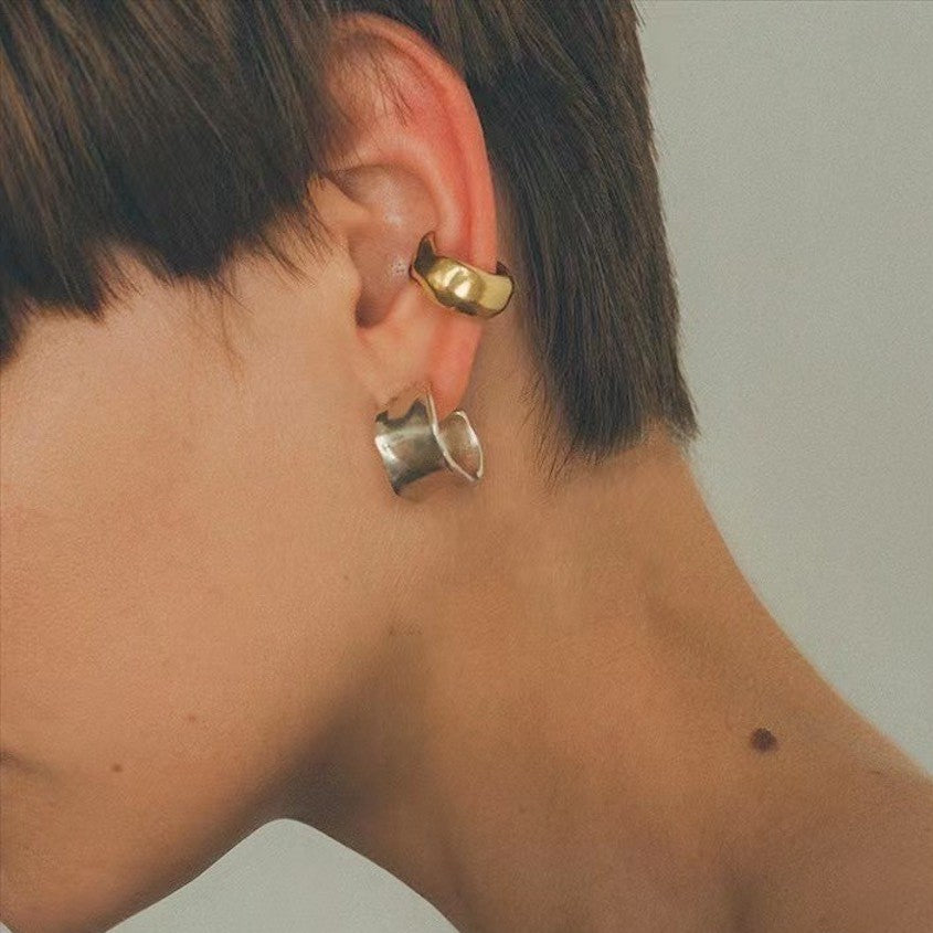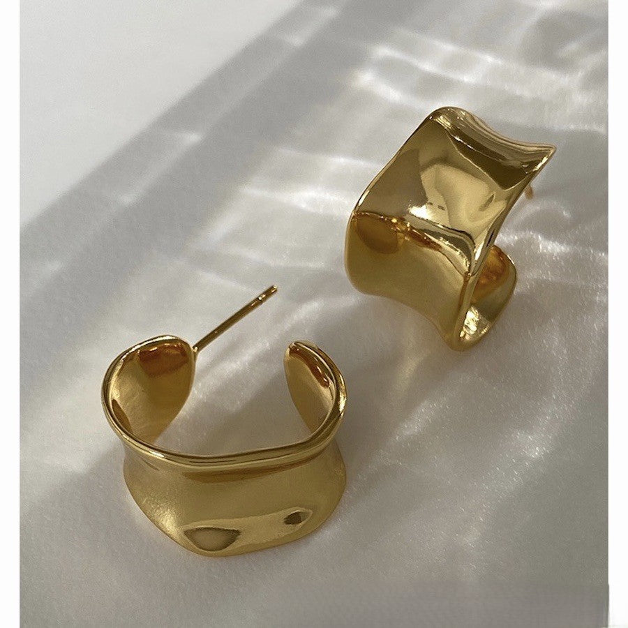 不規則な広い表面のC字型の滑らかな表面S925シルバーニードルイヤリング