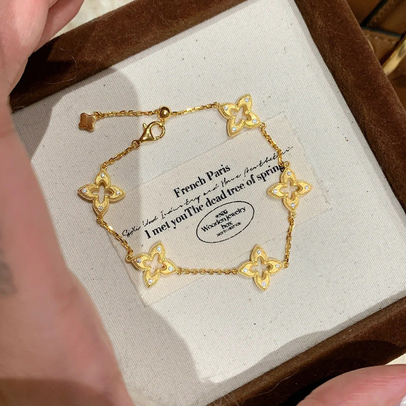 レトロなカットアウトブラッシュド四つ葉のクローバーブレスレット