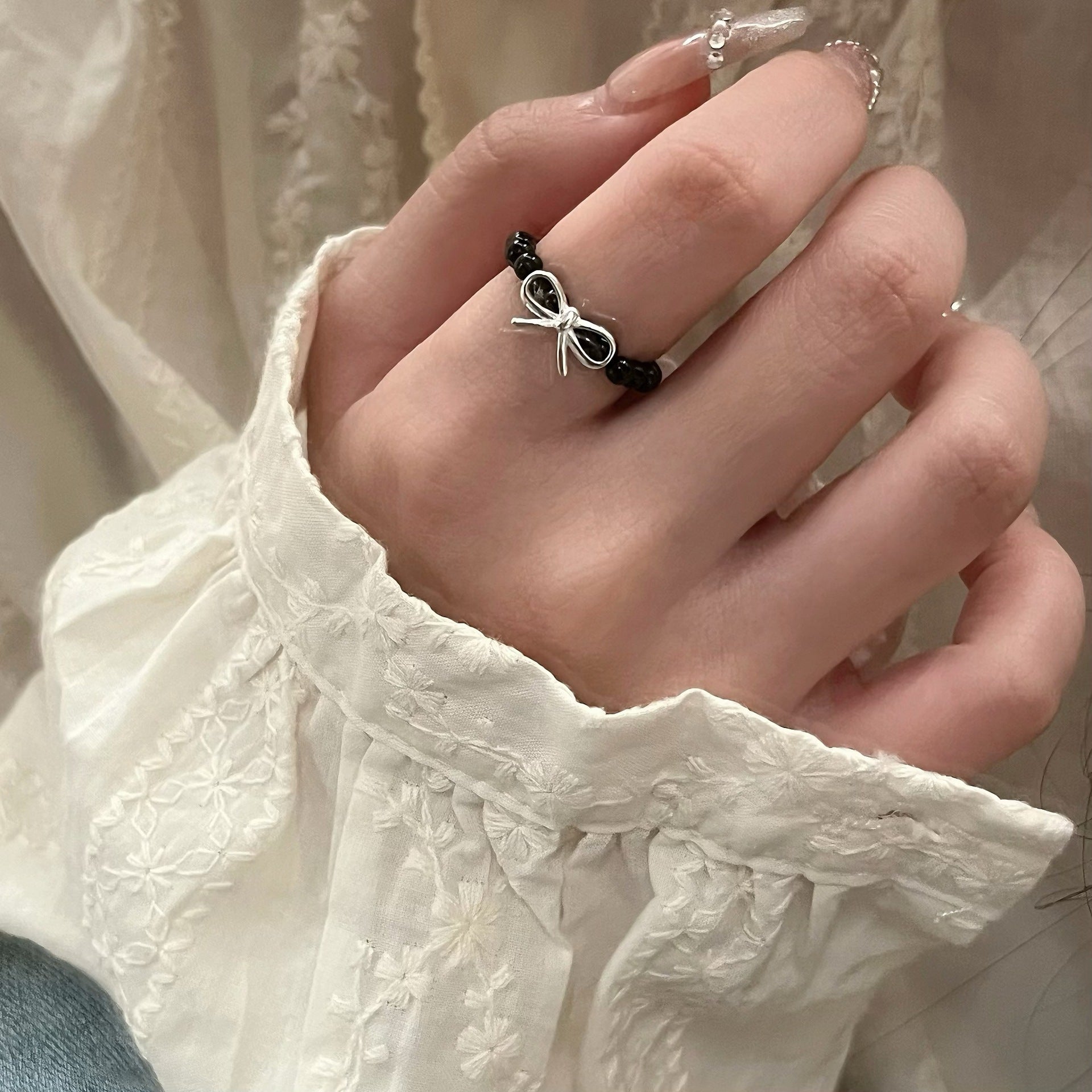 S925スターリングシルバーのボウビーズリング