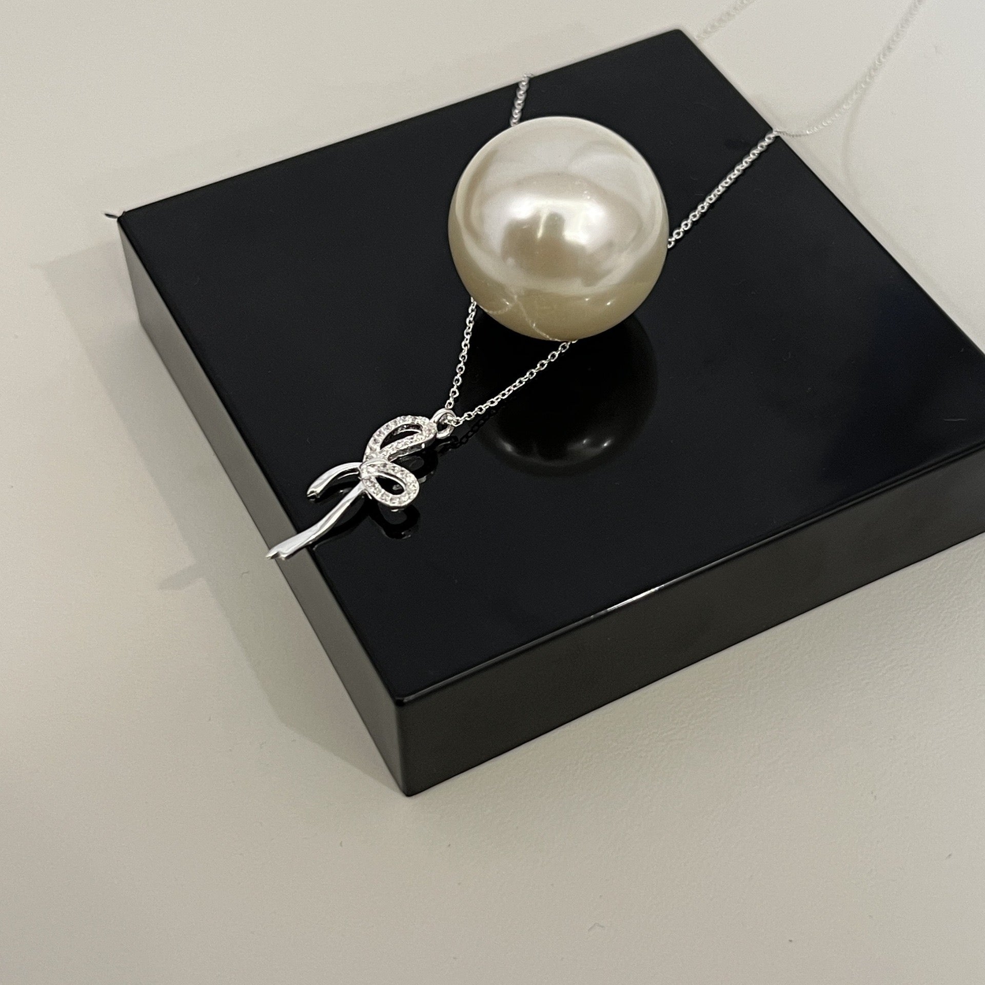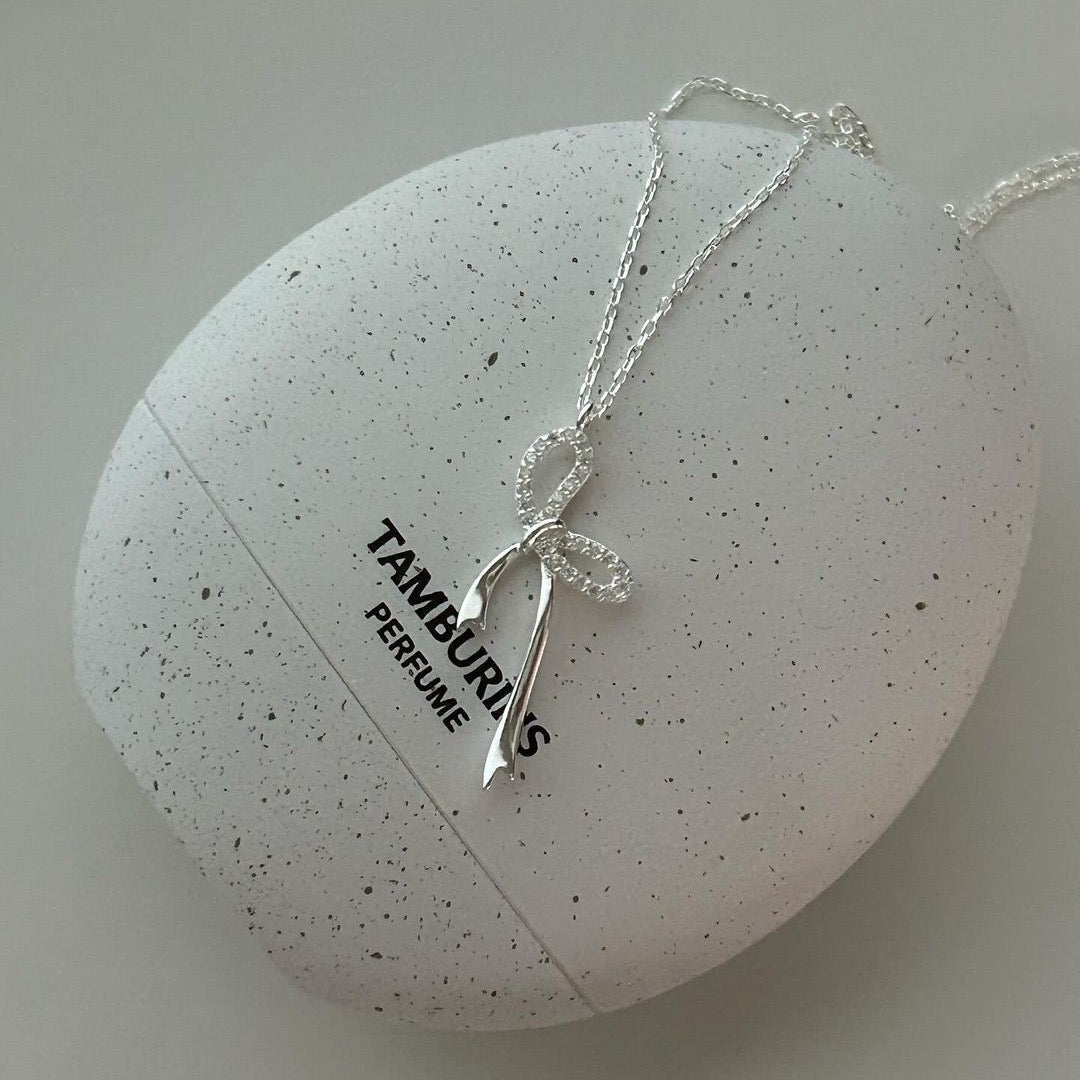 S925 Sterling Silver Bow Pendant Necklace with Rhinestones