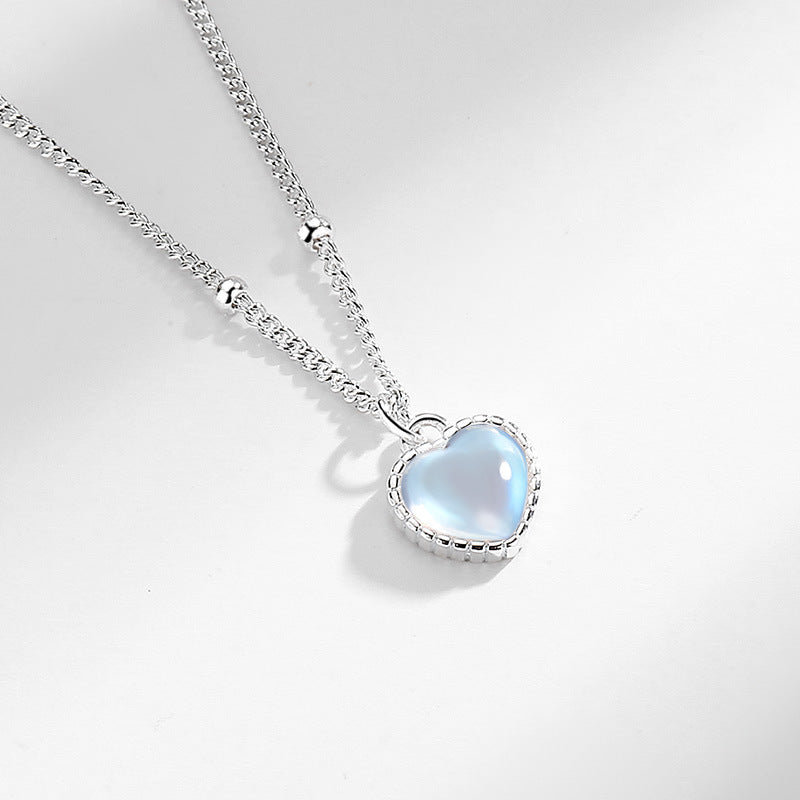 S925スターリングシルバーグラデーションカラフルムーンストーンラブネックレス