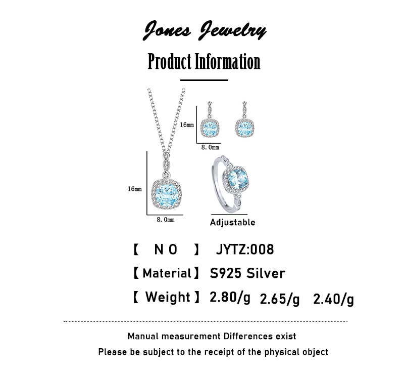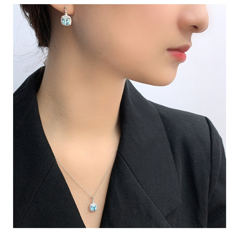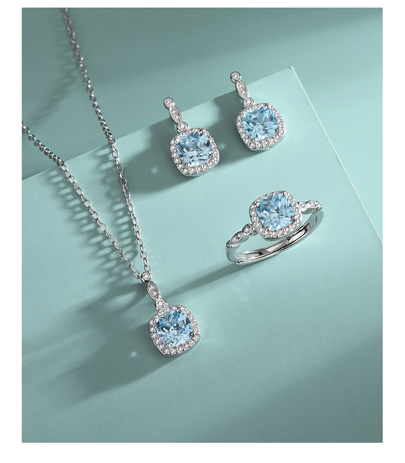 S925スターリングシルバーオーシャンハートブルージェムリングネックレスイヤリング