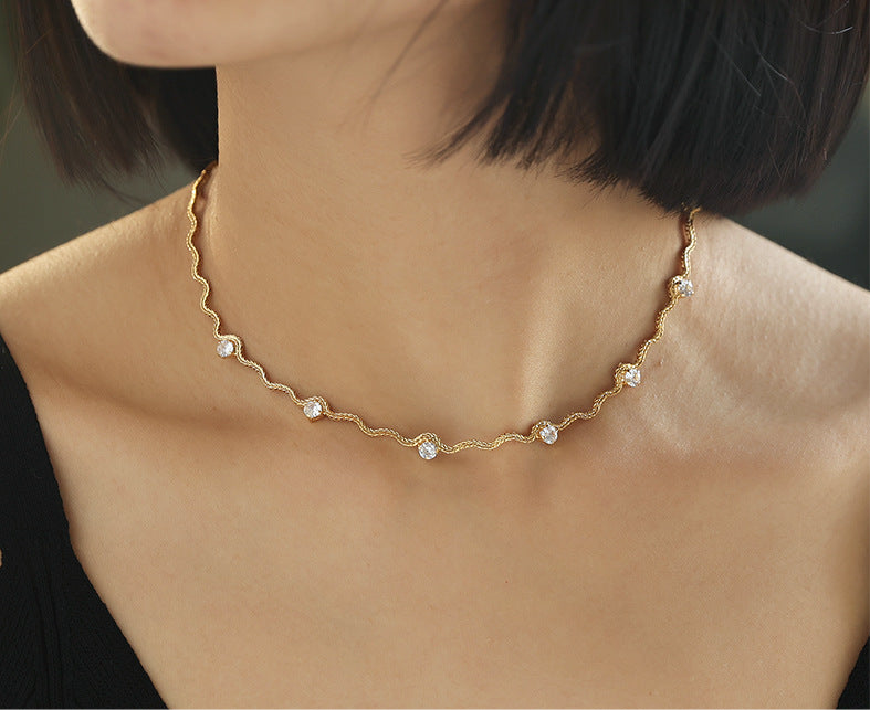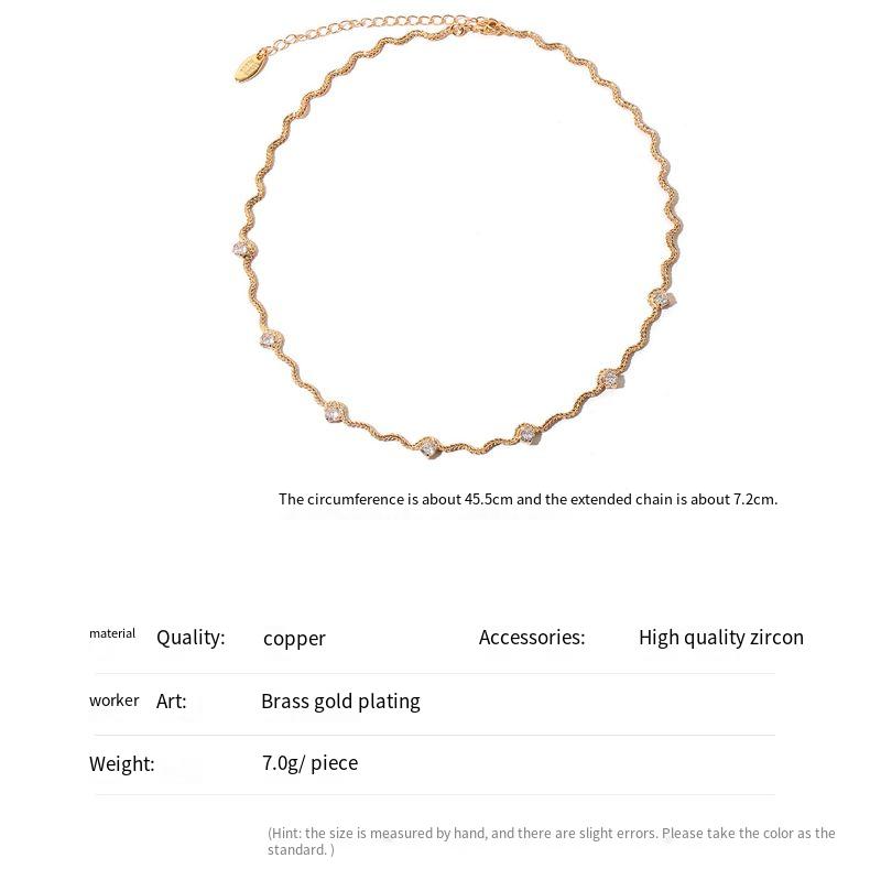 ジルコン装飾のイレギュラーチェーンネックレス