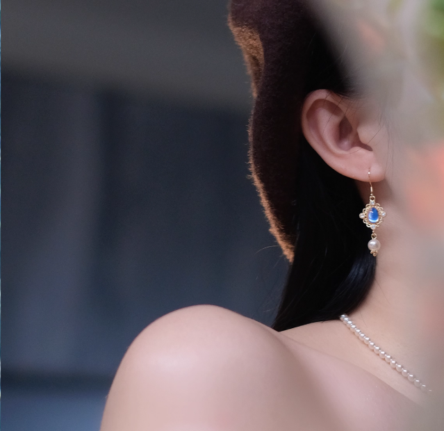 Blue gem Pearl Necklace Earrings Set