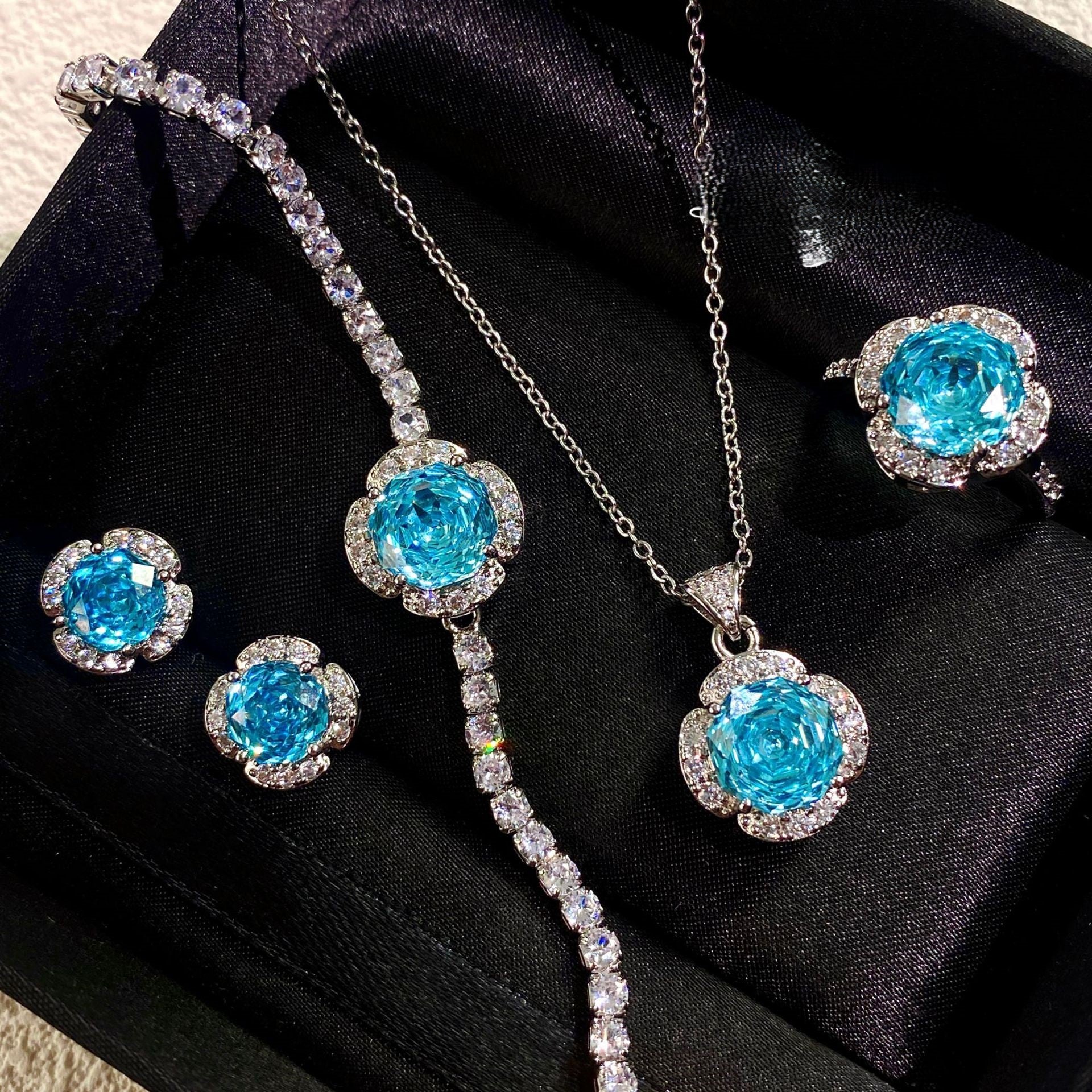 Octagonal rose navy high carbon diamond necklace ring earrings bracelet set