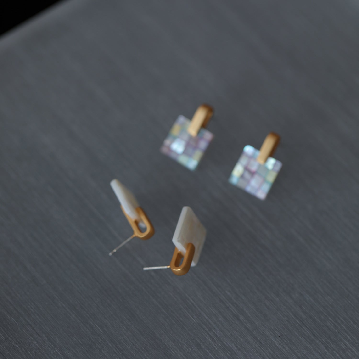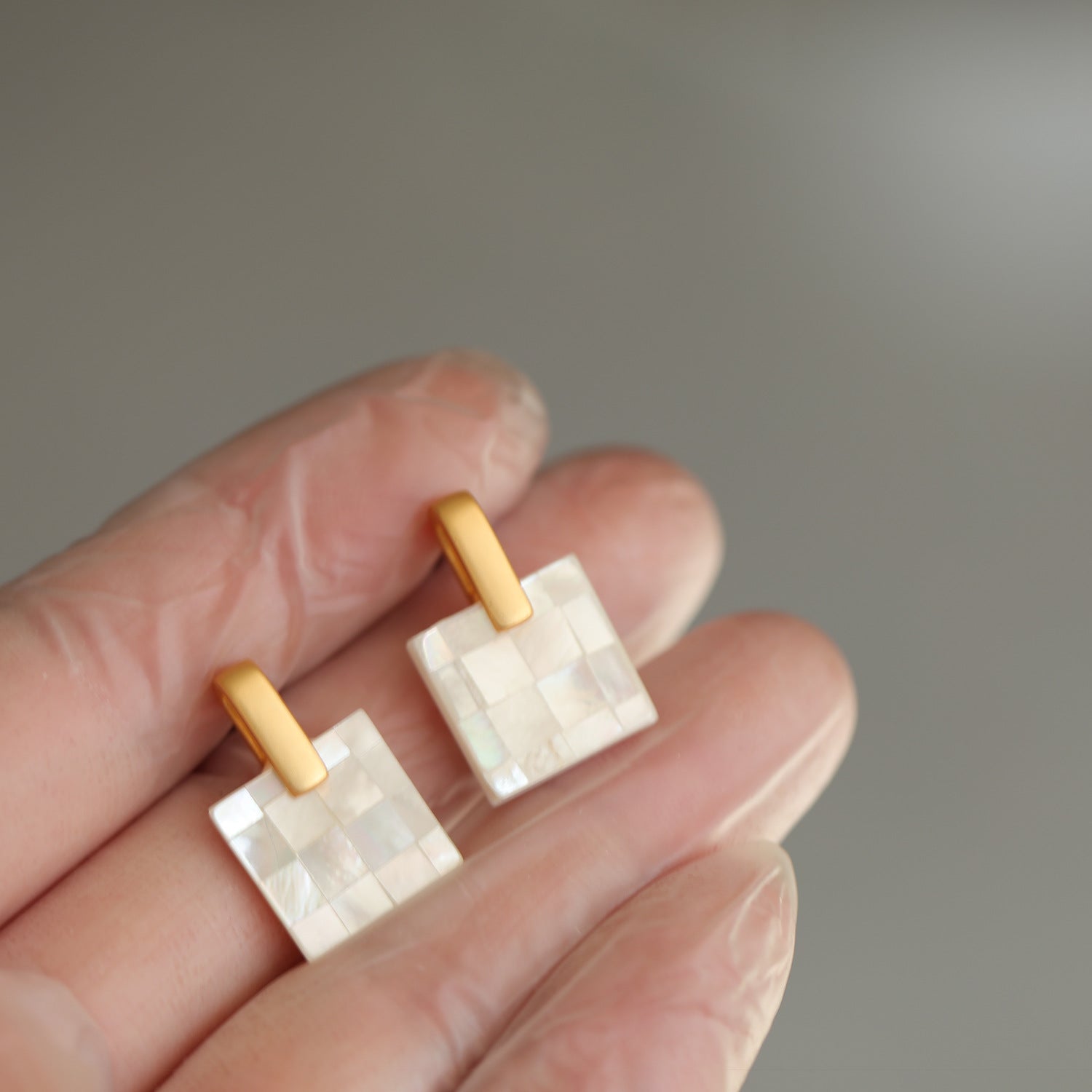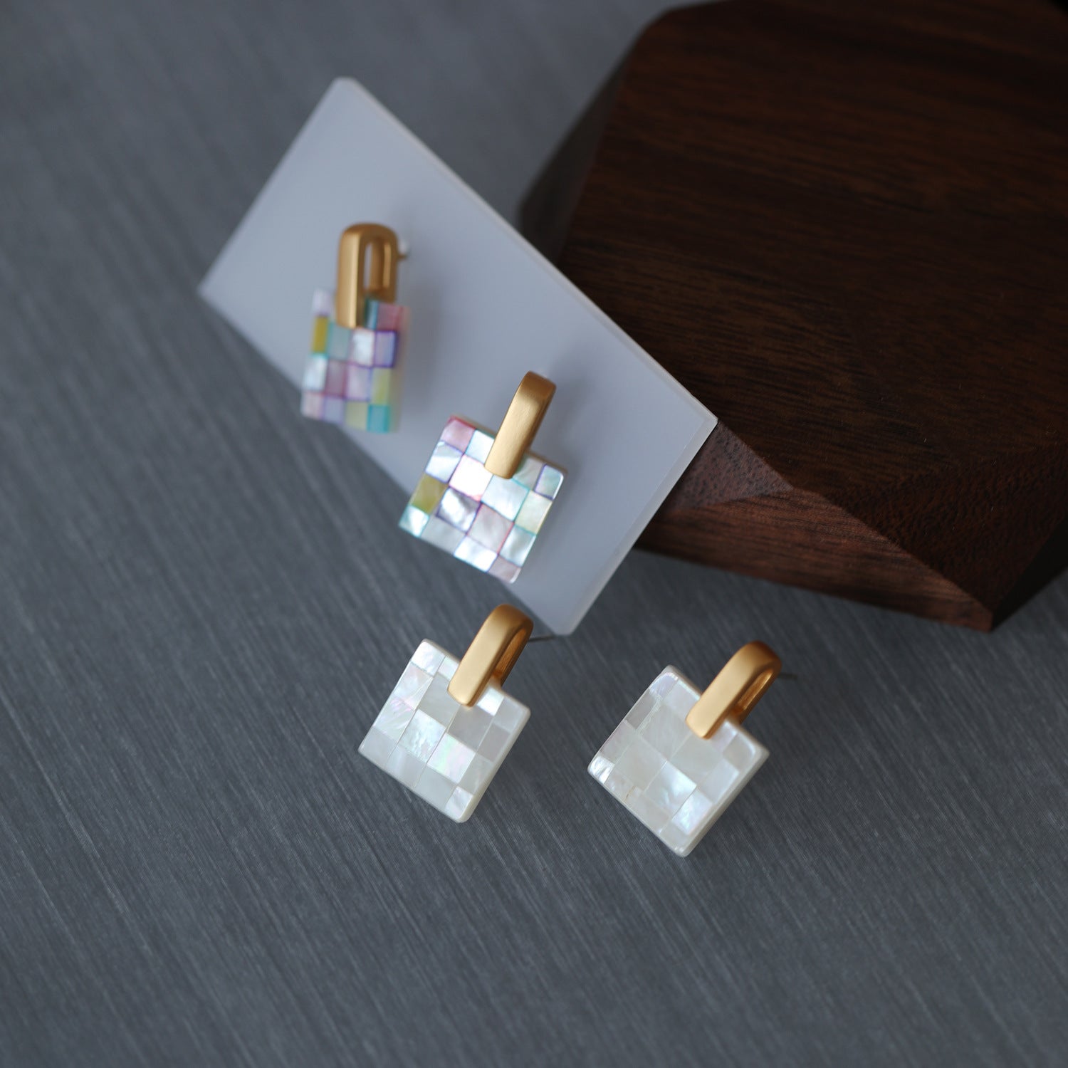 S925 silver needle high-quality stitching white shell necklace earrings set