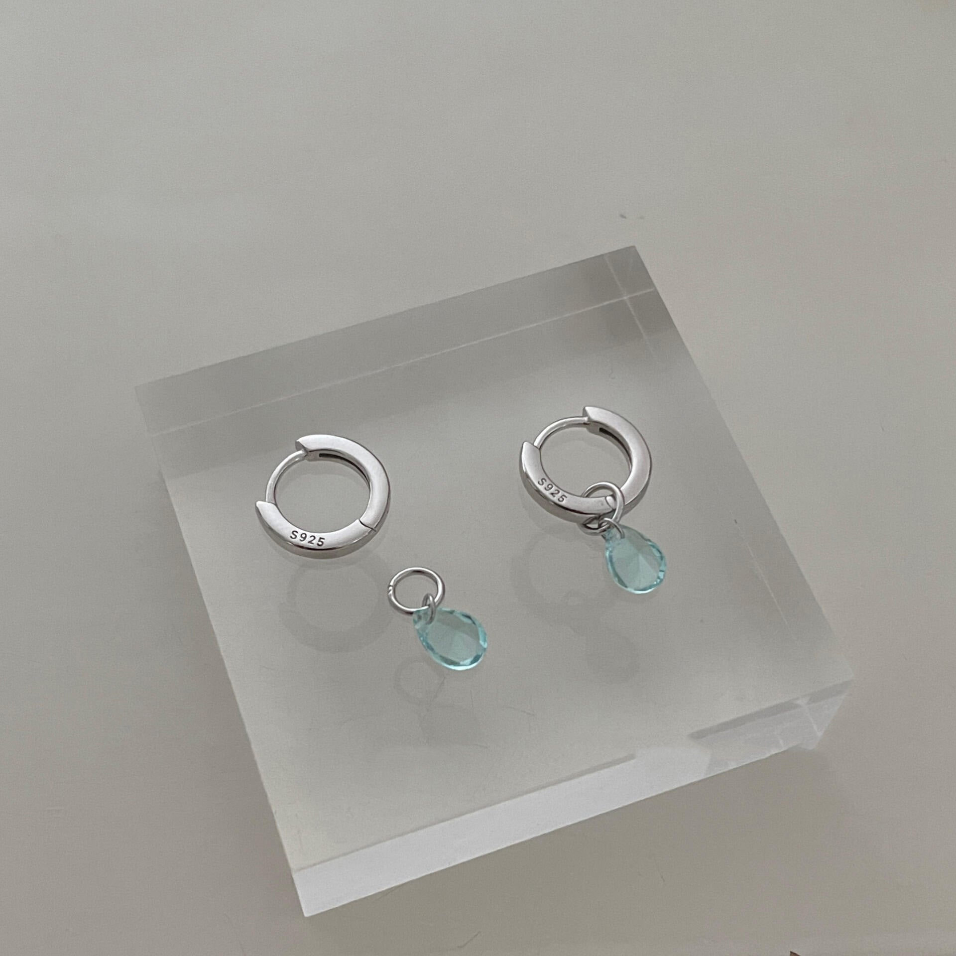 S925 Sterling Silver Blue Drop Earrings