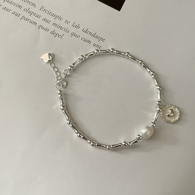S925 sterling silver handmade bamboo heart-shaped pearl necklace bracelet set