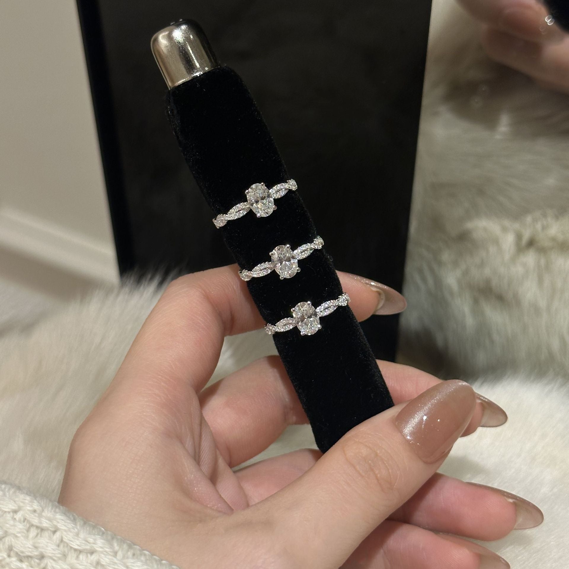 S925 Sterling Silver Rotating Ballet Spiral Oval Pigeon Egg Twisted Diamond Ring