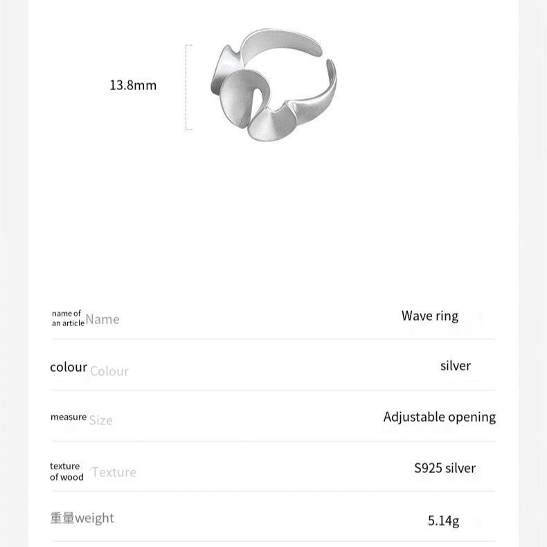 S925 sterling silver wavy skirt ring