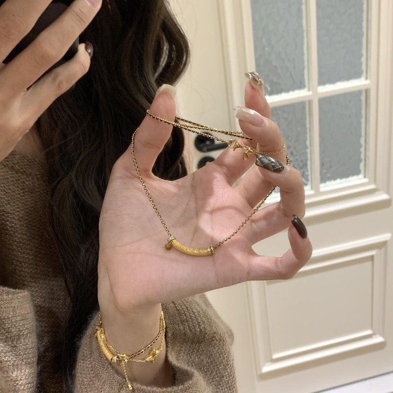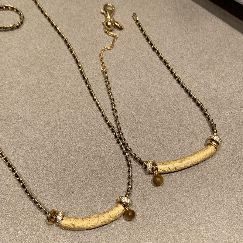 Smiling Tiger Eye Stone Black Gold Brushed Necklace Bracelet