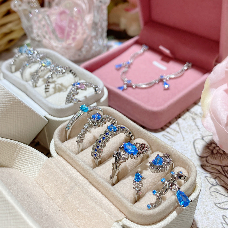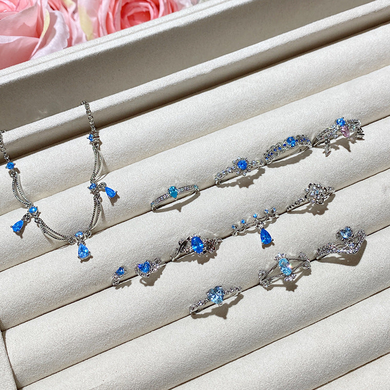 Super Flash Sea Blue Zircon Ring with 18K Gold Plating